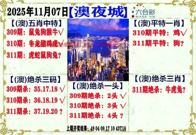 | 310期:五肖 | 猴虎羊狗龙 | 虎16中 |