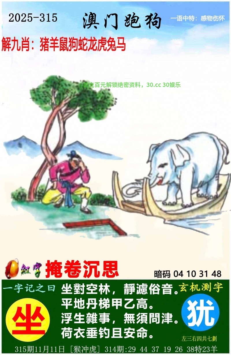 | 314期:九肖 | 蛇羊虎猴兔牛马狗猪 | 羊23中 |